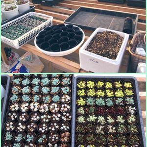 ✤ハウスワークレポート✤ 昨日、今日の午後の作業で、苗の植え替えをしました 1号セルトレーから、2号ポットへ鉢上げ🪴114ポット 10月に挿し芽した苗でも、セルトレー1マスに根鉢が回ってる品種もあったりと、セダムの秋の成長をひしひしと感じました ハウスはまだ夜間は加温しないので、外気温と同じ温度 ただ、日中晴れると温度が上がります🌡 ハウスの温かさでまだまだ成長が期待出来そうです🪴 今日はずーっと強い雨が降っていたけど、ハウスは風が当たらないので、寒さはなく快適でした😊