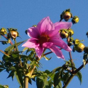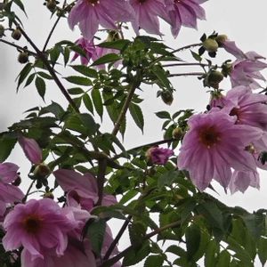 空高く、馬肥ゆる秋🍁🍂 こちらの✨皇帝ダリア✨ 太陽に向かって、沢山咲き出しました🤗🤍💜💞