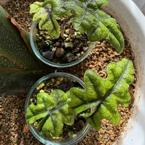 アロカシアジャックリンの小芋がついに動き出しました🌱 2枚目は親株です