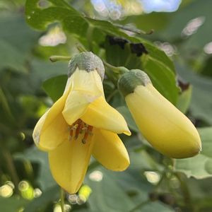 キレンゲショウマの花が咲きました、蕾も可愛いです💛🌿 キレンゲショウマは紀伊半島、四国九州のみに生息する花で、絶滅危惧種Ⅱに指定されている1属1種の多年草です。 葉は円心形で掌状に浅裂し、長さ幅共に10~20cm位です。 対生する苞の脇から花柄を出し集散状に3個ずつ花を開きます。 アジサイ科キレンゲショウマ属