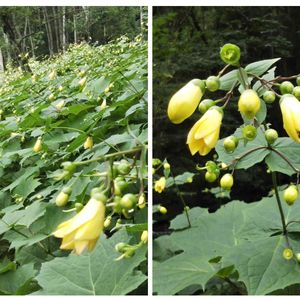 キレンゲショウマ(黃蓮華升麻)✨ 学名:Kirengesshoma palmata アジサイ科キレンゲショウマ属 本花だけで1層1種を構成する 緑色の大きな葉の間から ラッパ状の黄色花を下向きに咲かせ🎶 昨年、初めて会えて今年も同じ場所に ひっそり咲いていました🥰🎵 🏷日曜ビタミンカラー♪ 🏷日曜日は日本を感じる和の花 🏷幸せの黄色いお花 🏷らんまん応援♪ 🏷黄色いお花大好き協会 🏷山野草マニア