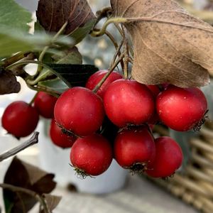 ルビー山査子(サンザシ)の赤い実 真っ赤なルビー山査子。 本日収穫しました(❁ᴗ͈ˬᴗ͈) たくさんの真っ赤な実が可愛い⸜❤️⸝ฅ^´థ౪థ^ฅ⸜❤️⸝ Xmasカラーなので、もう1ヶ月もってくれるといいのに😅 🏷️真っ赤な火曜日