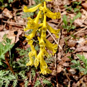 ミヤマキケマン(深山黄華鬘) *ケシ科ケマン属 *花期は4〜7月 近畿地方以北の日当たりの良い林縁などに生える! 茎は赤みをおび、葉は互生し羽状複葉! 全体に柔らかく無毛! 茎頂に黄色い唇形花を多数付ける! 有毒植物❗️ 4月17日撮影 宮城県加美郡 薬来山