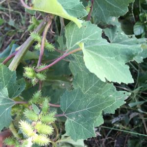 今日のお花「オオオナモミ」 撮影日:9月25日。 ここの公園では保護観察の対象で、囲いで守られていたから絶滅危惧種の「オナモミ」かもしれない。
