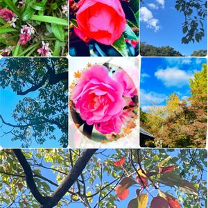 ミニ薔薇の蕾とキンギョソウ 2枚目…山の紅葉 3枚目…空