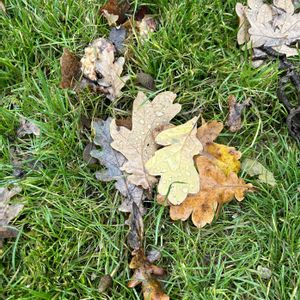 今日のお花🏷️カシワ そういえば🤔この形を見たかもと思い出写真を探してみたらありました。 一昨年のクリスマス時期に🎅訪れたフランスの美術館の庭に散るカシワの葉。雨に濡れる芝?はまだグリーンで💛🤎の葉達が美しかった・・・ 2023年12月24日📸ナンシー派美術館