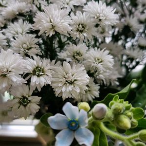 💠クジャクソウ(孔雀草) 多数の小花が孔雀の尾のように見えることから名がつきました。花色は白、ピンク、紫、青などがあり、冠婚葬祭の花としても人気があります。 ⚫︎キク科 アスター属 ⚫︎原産 北アメリカ ⚫︎花期 8月〜10月