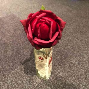 去年、ストレス解消に買ったバラのうちのひとつ(その2) 蕾ひとつしかつかなかったけれど立派な花が咲きました🌹 雨上がりでも良い香りだった💕 大輪の赤いバラはやっぱり特別感があって良い😆