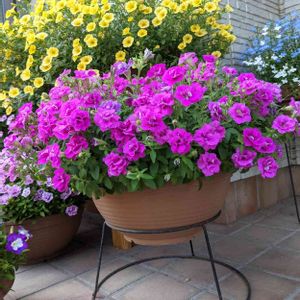 サフィニアフリル ピンク 鉢全体に広がって来ました 私にとってフリルは少し難しいお花です😅 今回は1度も摘芯していません 苗の形をみて、摘芯を考えました たくさん咲いてもらおうと 摘芯をまめにした結果 分岐が良すぎて、花芽が積み積み になり 早い梅雨入りも含めて 風通しが悪くなって結局 ダメにしてしまった経験からです 1株でもこんなに伸び伸び 1度咲いてもらおうと思ってます