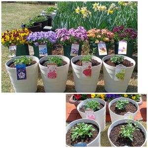 プレゼント苗の植え付けをしました。徒長ぎみのミリオンベルのチェリーピンクだけ挿し穂確保のために切り戻し🎵 これからの成長が楽しみです。