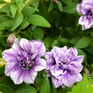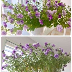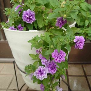 梅雨明けしたら猛暑💦人もお花もしんどい季節です💦でもお日さまが出ると切り戻してた、サフィニアフリルとアズーロコンパクトがまた咲き始めました✨✨ギュギュの八重咲きはさし芽ちゃん😚元株は蒸れで、切り戻し2回もしてていまだにまともに咲かせられない💦💦さし芽はピンチしてないので、先に咲きました✨