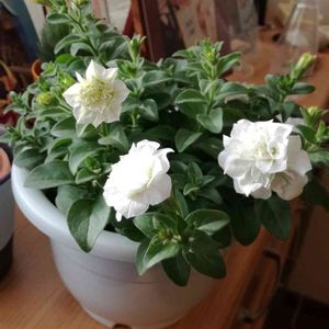 冬越し中、日当たりの良い窓辺で管理中のサフィニアフリルです✨冬越し中に咲かせていいのかわからないのですが💦やっぱり見たくて😅このまま元気に冬を越してほしいな✨
