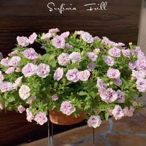 サフィニアフリル💠 ライラックブルー ホワイト ピンク 1鉢に3色植えました💕 メッチャ悩んだけどいい感じの仕上がり💕