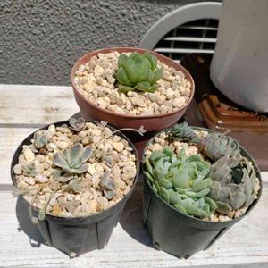 やっと晴れてきました☀️ 増えたパリダムと ただちまちまと寄せたくて❤️ 真ん中の桃美人は、購入してから半年経ちますが、全く成長しません、、 冬にお水をあげすぎてから 元気が無さそうなままです💦💦