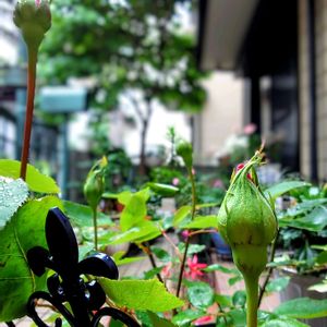 金曜日の蕾たち ピンクのバラは終わっちゃったけれど 赤バラや黄色のバラ 開花準備万端〜‼️ 雨に濡れるバラはステキです。 でも開花する時には おひさま出てて欲しいな🩷