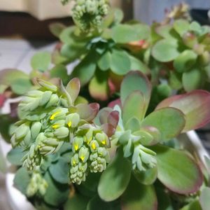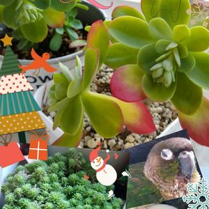セダム薄化粧さんの花芽(•ө•)♡ パリダム(左下) 薄化粧さんはカット出来るように気根がうまく出てるよ😀 ホオミドリアカオウロコインコのワサビ🐦 コザクラインコのレモン🕊 ☆スタンプで遊んでみた〜☺⚝.˖٭