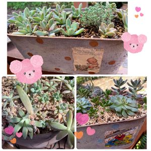 実家の多肉寄植え。 雨ざらし伸び伸び枯れ枯れだったので寄せ直し。 育つことを考えて少し隙間も入れてセダムでうまる予定。 どうなることか…