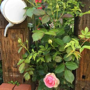 ジャルダン ドゥ フランス 去年の猛暑の時期に、700円に 値下げされていた子。 形が崩れていたせいか、はじめに咲いた 一番花は、新く伸びた枝の真ん中から出て 咲いています。 サーモンピンク色の薔薇が 魚のサーモン色💕 うちにはないので新鮮😊