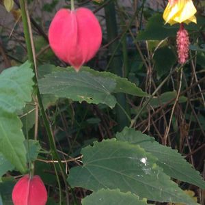 黄色のアブチロンの隣で、赤いアブチロン、チロリアンランプも咲き始めました。 🏷咲き始めた花たち 🏷グリーンアクセサリー♪