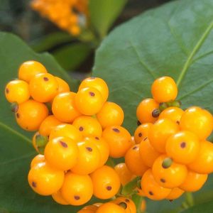 黄色の千両の実も、次第に鮮やかなオレンジに変わりつつあります。 花友さんから、キミノセンリヨウ…と、名前を教えて頂きました。