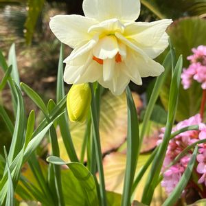 散歩して🚶♀️ このスイセンも可愛いくさいてました! 後ろに見えるのはヒマラヤユキノシタのお花も可愛いよね💕