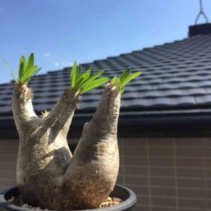 お気に入りのイノピさん。 今年もバッチリお目覚めです☺️ とりあえず眺めながらのコーヒータイム☕️ Pachypodium rosulatum var. inopinatum(パキポディム・イノピナツム)