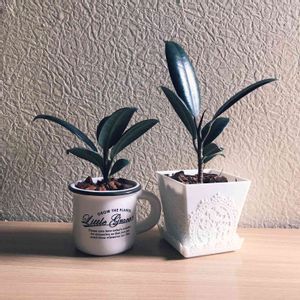 100均産のゴムの木 バーガンディ 大きくなって欲しいけど このまま ちびこいのも可愛い🌱 深い緑と新芽の赤が好き〜💚