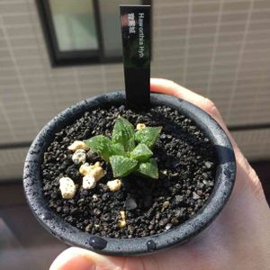 Haworthia hyb. 青鷲城 ウィミーの交配種だそうです。 つい、指でつんつんしたくなりますw 小さくてかわいいです。 じっくり育てようと思います☺️
