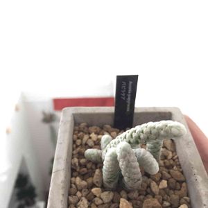 不思議な形をしています。 触感はまさに発泡スチロールですw 黒のプラ鉢だと何これ?って感じですが、コンクリ鉢に植え替えると雰囲気でますね☺️ Avonia papyracea(アボニア パピラケア:白蛇殿)