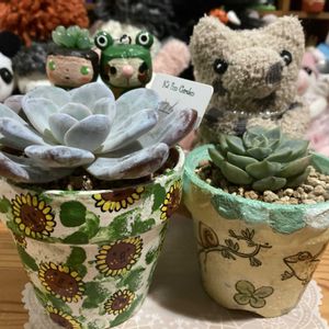 こんばんは♡ チャーガンジューヤイビンナ〜 みんさんからお嫁に来た 多肉ちゃんの寄植え〜✨ 🐒🐼根付くかな?と見守り隊です