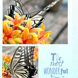 ガイラルディア ガリア オレンジスパーク🧡 真夏にも真冬にも咲いてくれる、丈夫なお花🧡 さすがに今はお花が小さくなりました。 アゲハチョウが遊びに来ていました🦋 なかなか面白い角度で撮れましたよ。目はマットな黒なんですね。 バックがグリーンだったらもっと素敵だったのに。ウッドデッキですみませーん😅