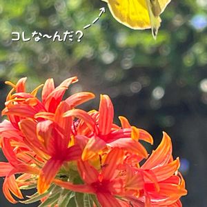 ガイラルディア ガリア オレンジスパーク🧡 1️⃣ オレンジ色のガリアの上、黄色いのは何でしょう? ↓ ↓ 答えはモンキチョウ💛 写真失敗💦飛び立った瞬間でした♪ 2️⃣ ストローを伸ばしてチューーーっとお食事中。 3️⃣ 羽スケスケ〜 このガリアは、庭の端のポイ捨て場に捨てられたのに根付いた子。何度もザックリ切り戻していますが、よく咲いています🧡🧡🧡 蝶々さんのお食事場となっていて、アゲハやキアゲハも来ていますよ🦋🦋
