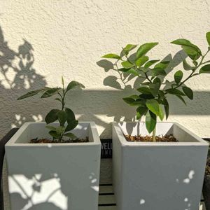 食した種からからシリーズ 柑橘姉妹 右:すす病?で夏前に丸坊主にしたグレープフルーツ 左:今年生まれレモン 順調です😚