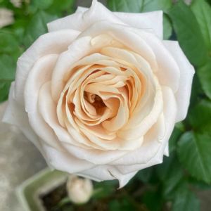和バラ『結』ちゃん ベージュ系でアンティーク基調が素敵な色 いつも黒星で葉っぱがなくなってしまうけど 今のところ病気もなくて 頑張って咲いてる♪ やっぱりバラも葉っぱがある方がきれいよね❣️