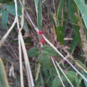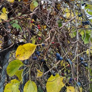 おはようございます😊 いつもありがとうございます💚 いつもの散歩道🚶♀️🚶♀️🚶♀️ アオツヅラフジの黒い実と 奥の赤い実はノイバラです💕 2022.11.24 📷