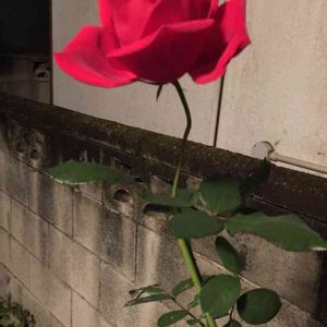 2016/11/26 夜間撮影。未だ11月だというのに連日最低気温0〜2℃と、東京では観測史上稀に見る寒さ。この.2日前には❄️雪も降りました。そんな中で奇跡の如く、2m丈の最頂部に花径12cmの花が一輪咲きました。凛としたその姿はその名の通り気高く美しい!この四季咲きの薔薇は「クリスチャンディオール」です。低気温のお陰で3週間もの間、色褪せることなくこのままの姿を保っていました。夜仕事から戻って玄関灯を点けると、そのライトアップされた美しさが格別で、毎晩見とれて寒い中佇んでました。