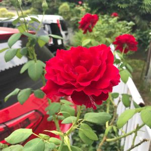まだまだ、綺麗に咲き誇る真紅の薔薇。 気品があります。 お出かけ先でのスナップです。