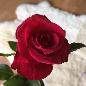 It's fine today☀️ 今朝のギフトは真紅の薔薇🌹 いい香り〜✨ This morning's gift is a crimson rose🌹 good fragrance.