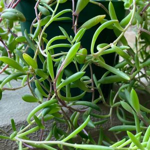 多肉さんご紹介161 ルビーネックレス2301 今日は暖かいですね🙂 チョロ水🚰投入です。 夏にずいぶん葉を落としましたが、 秋から元気に復活! お花は🌼これからかな~ 「🏷ネックレスの日」参加します🙌