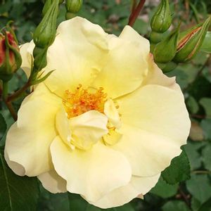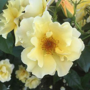1/13は成人式 - 金蓮歩 - 成人式に向けて、 発表年から今年で18年を迎える品種 金蓮歩(きんれんぽ)をご紹介します。 花名は、中国の故事より 「美人のあでやかな歩み」を意味します。 金色のおしべが美しく 実も楽しめる半八重咲きのバラです。 早咲きで次々と花を咲かせ、 うどんこ病や黒星病に強い強健種です。 . ・*:..。o○゚・*:..。o○゚・*:..。o○゚ 【 金蓮歩 】 系統:四季咲中輪系 花色:黄色〜淡黄色 花径:7~8cm 樹高:1~1.2m 半八重咲/横張り性 ・*:..。o○゚・*:..。o○゚・*:..。o○゚