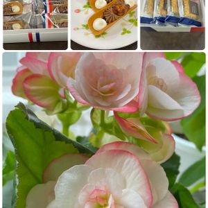 ☘️リーガスベゴニア☘️....大好きなこの花色❣️美しさを保つにはなかなかデリケートだけど、レースのカーテン越しの陽当たりで、冬の出窓に置くだけで明るく優しくなれる💕👍✨帰省した娘からの焼き菓子の[パリバターショコラ]と右の[ショコラパイ]はおいしいよ😍パリっぽいおしゃれな見た目も人気らしくて銀座三越で行列して買ったんだって。ありがとう💕🙏✨