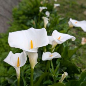 今日のお花カラーです ①カラー(側溝横)②ホワイト③④フローズンクイーン 3年目は一本だけでピンクに⑤セントポーリア