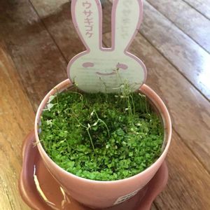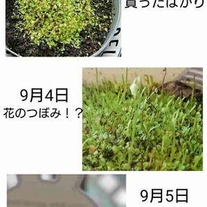 これって、本当にウサギゴケかなぁー🐰 未だに🐰ちゃんが出て来ないんです😫 花屋さんに騙されたのかと思ってしまいます😓 育て方が間違ってるのかなぁ〜💦 日光不足かと、春からしばらく外に出してみたけど、だんだん消えかけてから、慌てて部屋に入れ、ずーっと窓辺です。 葉の繁りが悪く水苔が黒ずんで来たので、とりあえず、植え替えました。 もう🐰ちゃんに嫌われてしまったよーん( ´Д`)y━・~~