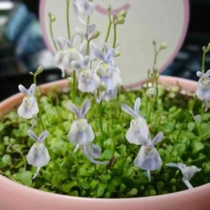 お待たせしました😊 ウサギゴケが咲きましたよ🐰 でもあれあれ???耳が短い🐰 他のGSさんのpicでは耳が長いのに😔 この苗は耳の短い子しか咲かないのかな😓 でもでも耳のピンクのラインと、顔のグリーンが可愛いので😍 ま いっか👍👍👍👍👍 ウトリキュラリア.サンダーソニー 和名:うさぎ苔(ウサギゴケ) 食虫植物です。といってもハエとかを捕まえるとかではなく、根っこに目に見えない位の小さな袋が有りそこで水中の小さな微生物を捕まえて栄養にしています。