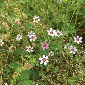 シシリンチウム💜 全長10cmのおチビ、小さな小さな、アヤメのように、すっくと立ち上がり、晴れると咲き、夕方萎む可愛い奴ですヾ(*´∀`*)ノ 初夏から夏への目印なんだ🎶 種が沢山できるのよ🌱🌱🌱