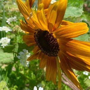 ひまわり🌻 咲いてました♪ 倒れても 咲いたひまわりさん オルレアさんと会話中🌻🍀 暑さにも、負けません🌻