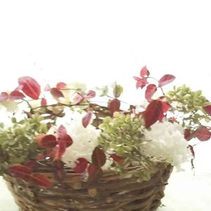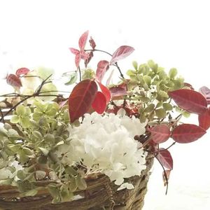 漂白アナベル 秋色アナベル 紅葉した初雪カズラ🍁 リースを作ろうと材料を集めて籠に置いてパチリ💕