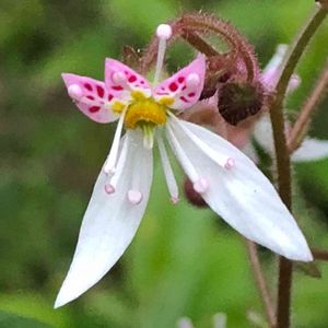 こんなに可愛いお花が 近くにあったなんて (´-`).。oO🎀 お庭で見つけたユキノシタ❄️❄️ よく見るとリボンに キラキラビーズを つけたみたい💖✳︎ こんなリボンがほしいな👒