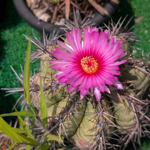 3年前から育てているサボテン🌵紫太陽が初めて花を咲かせてくれました 玄関のドアを開けたら鮮やかなピンク色のお花が目に入ってきて、ビックリ&感動でした