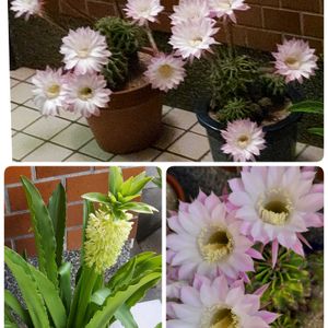こんにちは👋😃 昨夜 サボテン🌵の花が2鉢 13輪 夜中12時の📱💥で 昨年 苗を頂いて 今年一輪 パイナップルリリーが開花しました。💚🍍 可愛い色合い綺麗ですね。😍💓